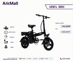 Загвар: AIMA IDOМотор: 350 WБаттерэй: 48V12AH liДээд хурд: 25 км/цТуулах зай: 40кмДаац: 150кг