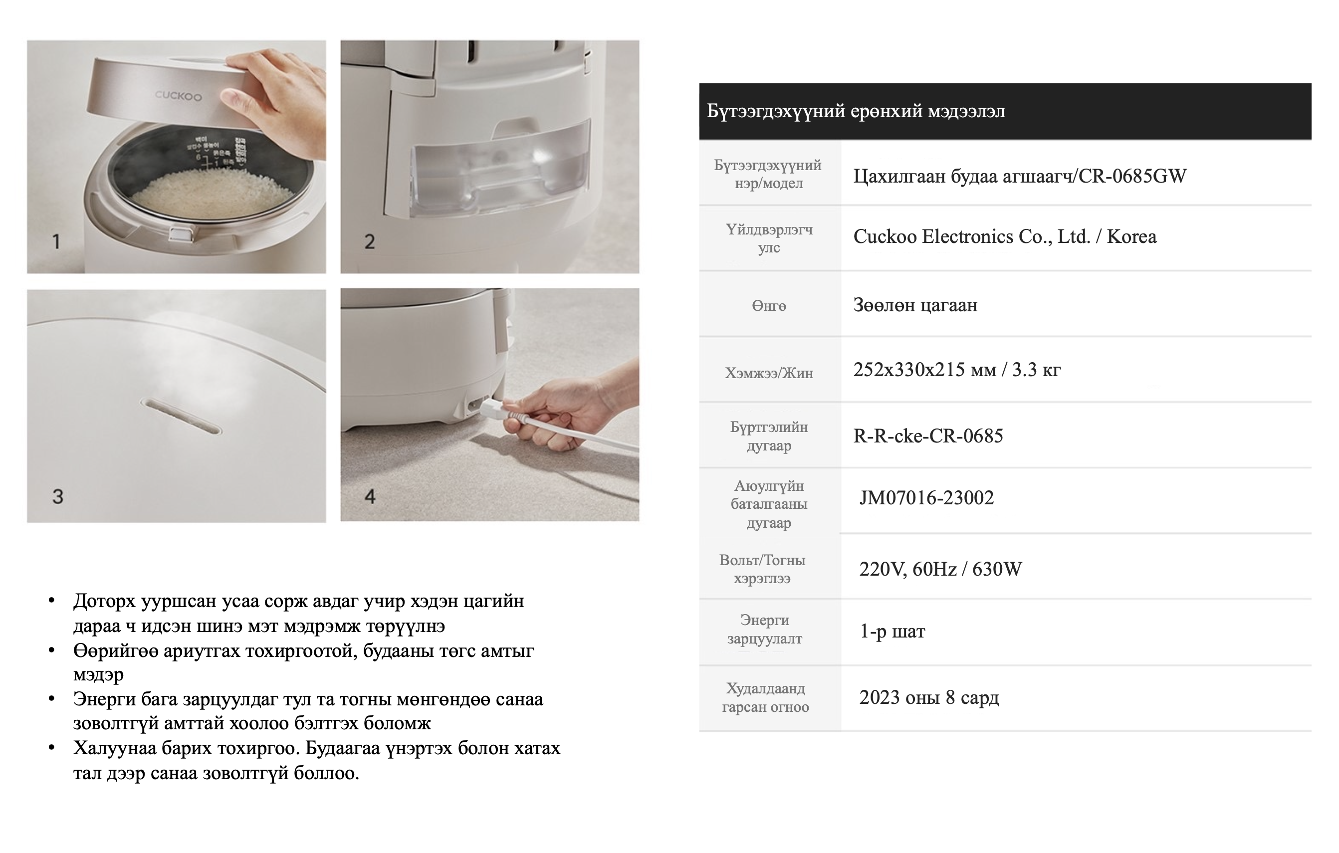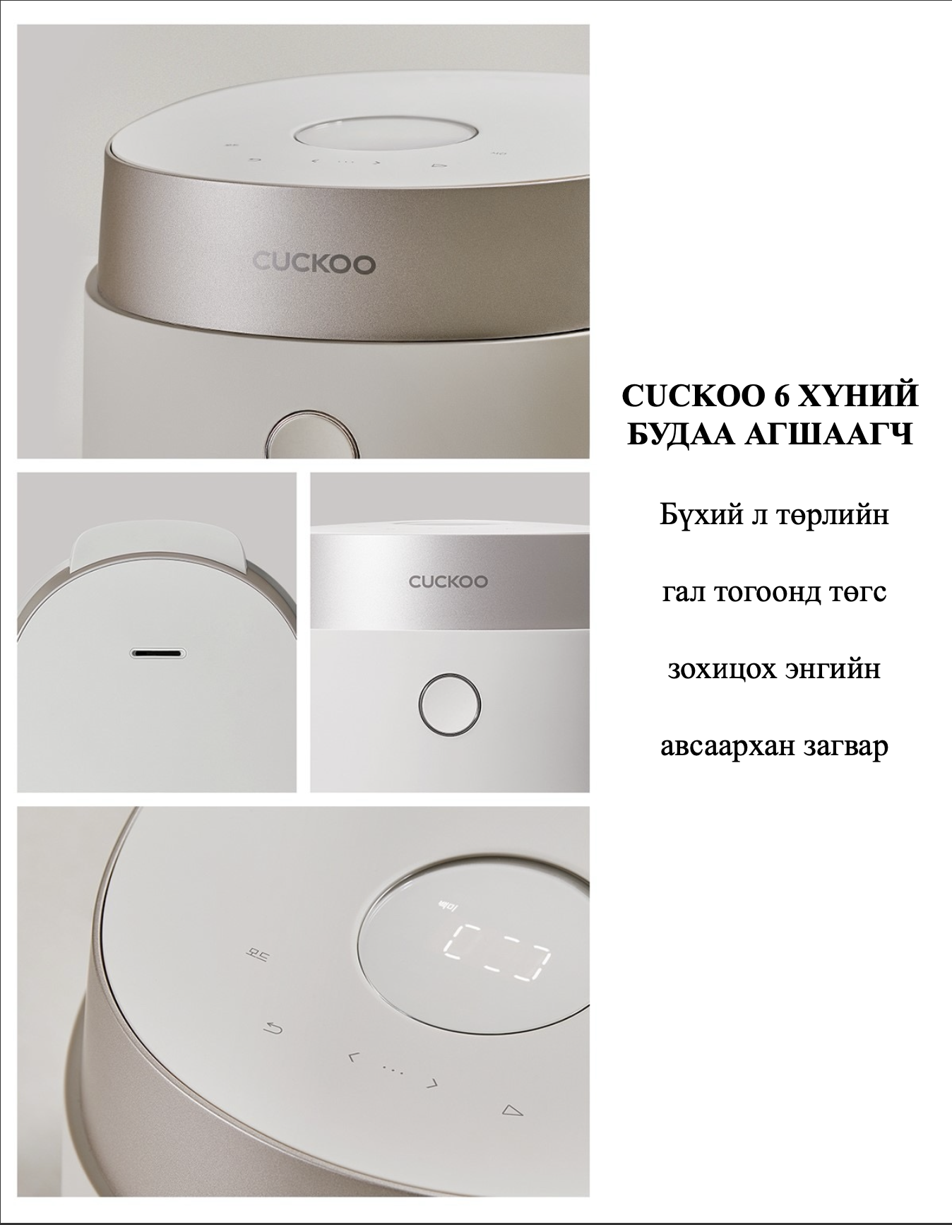CUCKOO 6 ХҮНИЙ БУДАА АГШААГЧ-Бүхий л төрлийн гал тогоонд төгс зохицох энгийн авсаархан загвар