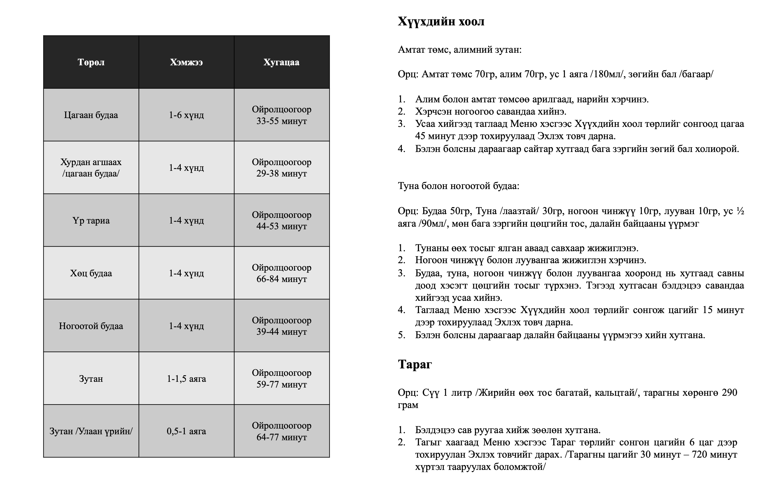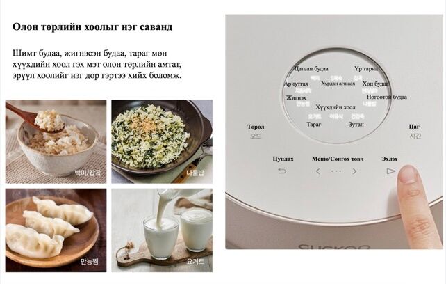 Шимт будаа, жигнэсэн будаа, тараг мөн хүүхдийн хоол гэх мэт олон төрлийн амтат, эрүүл хоолийг нэг дор гэртээ хийх боломж.