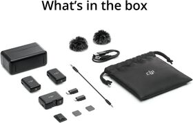 | Included Components | DJI Mic Hot Shoe Adapter ×1, Instruction Manual ×1, DJI Mic Receiver ×1, DJI Mic Mobile Phone Adapter (Lightning) ×1, Charging Cable ×1, DJI Mic Charging Case ×1, DJI Mic Windscreen ×2, DJI Mic Camera Audio Cable (3.5mm TRS) ×1, DJI Mic Clip Magnet ×2, DJI Mic Mobile Phone Adapter (Type-C) ×1, DJI Mic Transmitter ×2, DJI Mic Carrying Pouch ×1 |