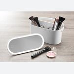 Portable Makeup Organizer with Adaptable 180° Swivel LED Mirror Stand
