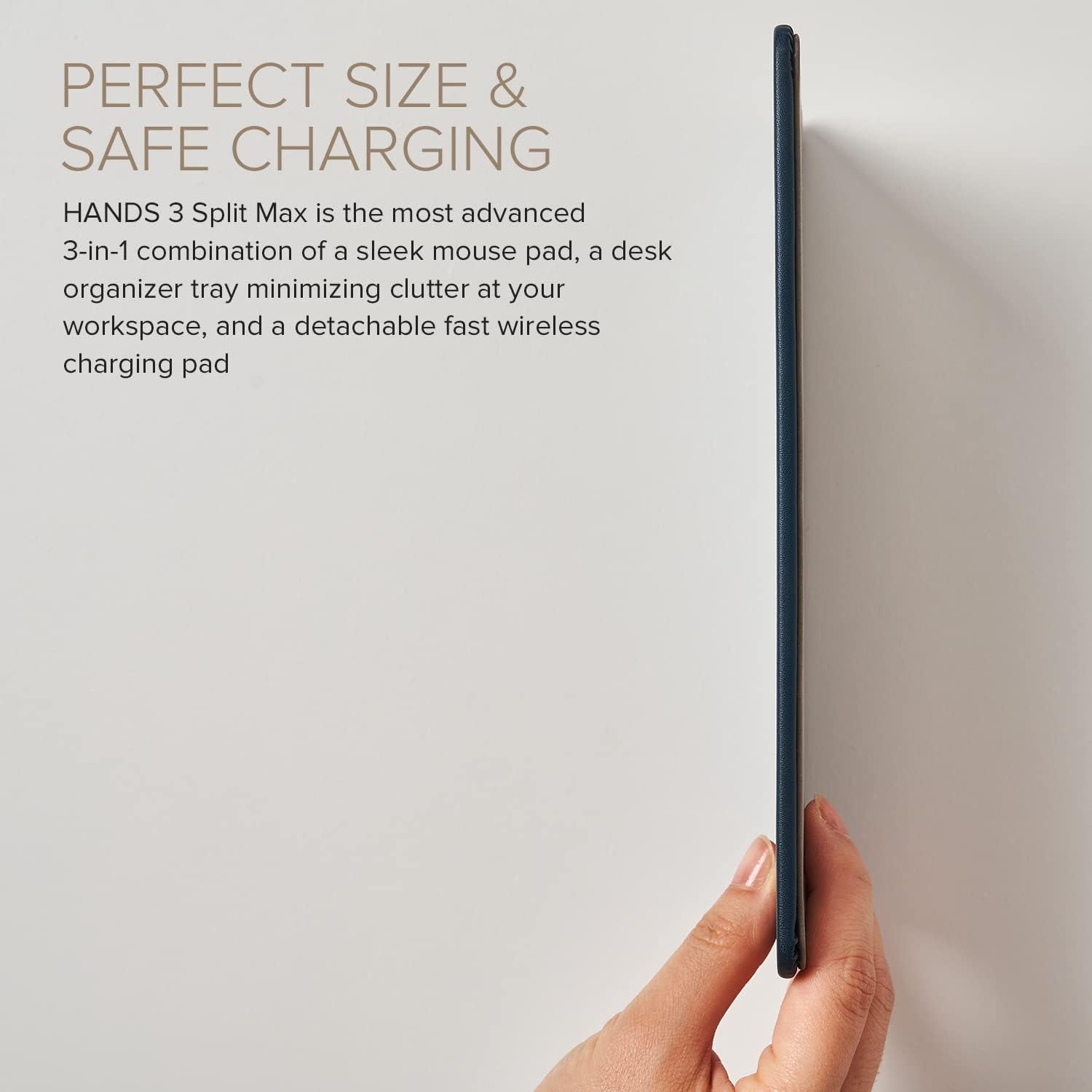 MOUSE PAD WIRELESS CHARGER: The Hands 3 Split Max is a mouse pad charger hybrid, that can be used as a mouse pad alone, and to charge multiple electronic Qi devices. Whether gaming or working at your MacBook or PC, you can keep devices wirelessly charging while you sit at your desk.