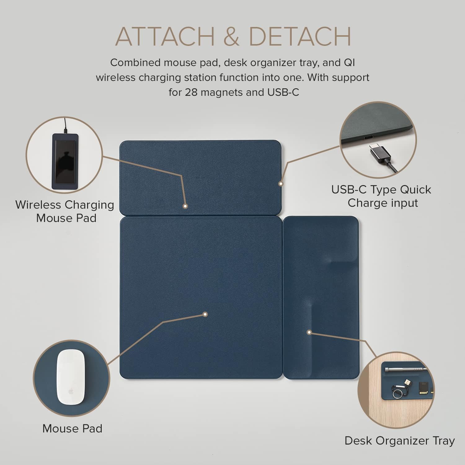 3-IN-1 DETACHABLE DESIGN: This is a wireless charger with phone charger and desk organizer attachments arranged in a magnetized detachable design. You can use all three parts of this mouse pad with wireless charger capabilities as a unit, or separately based on your layout preferences.